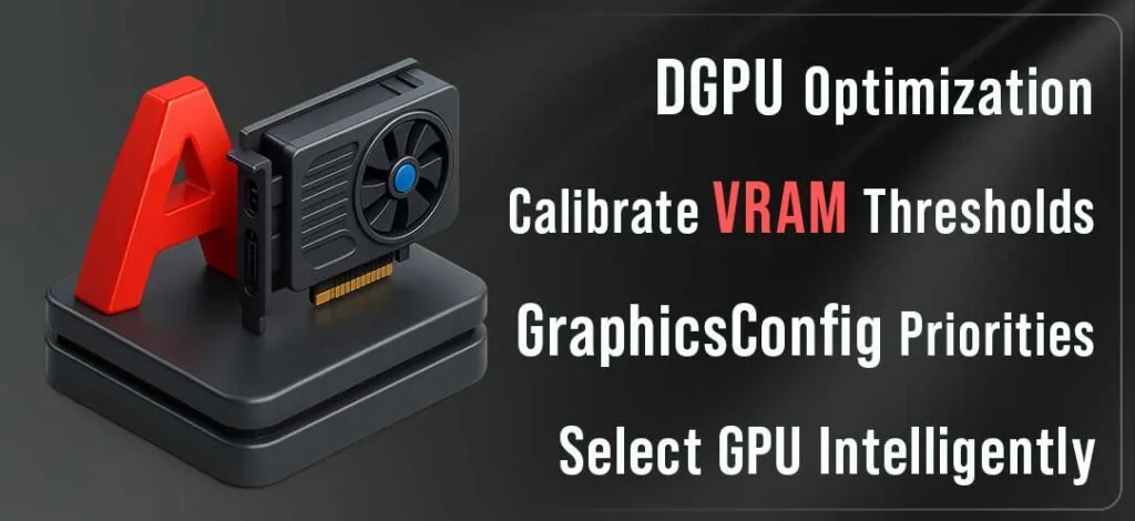 در مدلهای پیچیده، نماهای حجیم، Xrefهای متعدد و گردش آزاد در نماهای سهبعدی، اتوکد از dGPU برای بیشینهسازی کارایی و بهرهگیری از مسیر DX12، هستههای پردازشی و VRAM بیشتر استفاده میکند. این انتخاب پایداری نرخ فریم، کیفیت گرافیکی بالاتر و پاسخدهی روان در Pan/Zoom/Orbit را فراهم میسازد و برای رندرهای نمایشی، هچهای گسترده و صفحهنمایشهای با رزولوشن بالا گزینهٔ بهینه است.